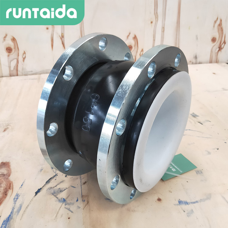 襯四氟橡膠接頭係用於(yú)金(jīn)屬管道之間起撓性連接作用的中空(kōng)橡膠製品。由(yóu)內外層膠、簾布層(céng)和鋼絲圈組成管狀橡(xiàng)膠件,經硫化成(chéng)型(xíng)後再與金屬法蘭或平行接頭鬆套組合而成。此產品可降低震動及(jí)噪聲(shēng),並可對因溫度變化(huà)引(yǐn)起的熱脹(zhàng)冷縮起補償(cháng)作用(yòng),廣泛應用於各種管道(dào)係(xì)統。該產品是錦通公司采(cǎi)用氣吹模具(jù)新工藝製造,係內膠(jiāo)層、增強層、中膠層(céng)、外膠層複合的(de)球體和鬆套鍛打低碳鋼法蘭(lán)組成的產品,具有耐壓高、彈性好、位移量大、減振降噪效果好,安裝方便等特點(diǎn)。除此(cǐ)之外該產品具有良好的耐酸(suān)堿性能,化學狀(zhuàng)態穩定,能夠大大降低腐蝕性介質對於橡膠接頭的(de)侵蝕影響。可廣泛(fàn)用與(yǔ)給(gěi)排水、暖(nuǎn)通空調、消防、壓(yā)縮機、造紙、製藥、船舶、水泵(bèng)、風機等管道係統。